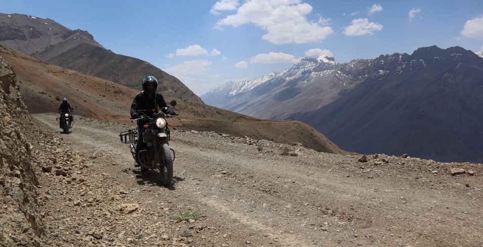 Gefahren wird auf der Royal Enfield Himalayan – einem bewährten Motorrad für Hochgebirgsterrain (Upgrade auf 450 ccm möglich).